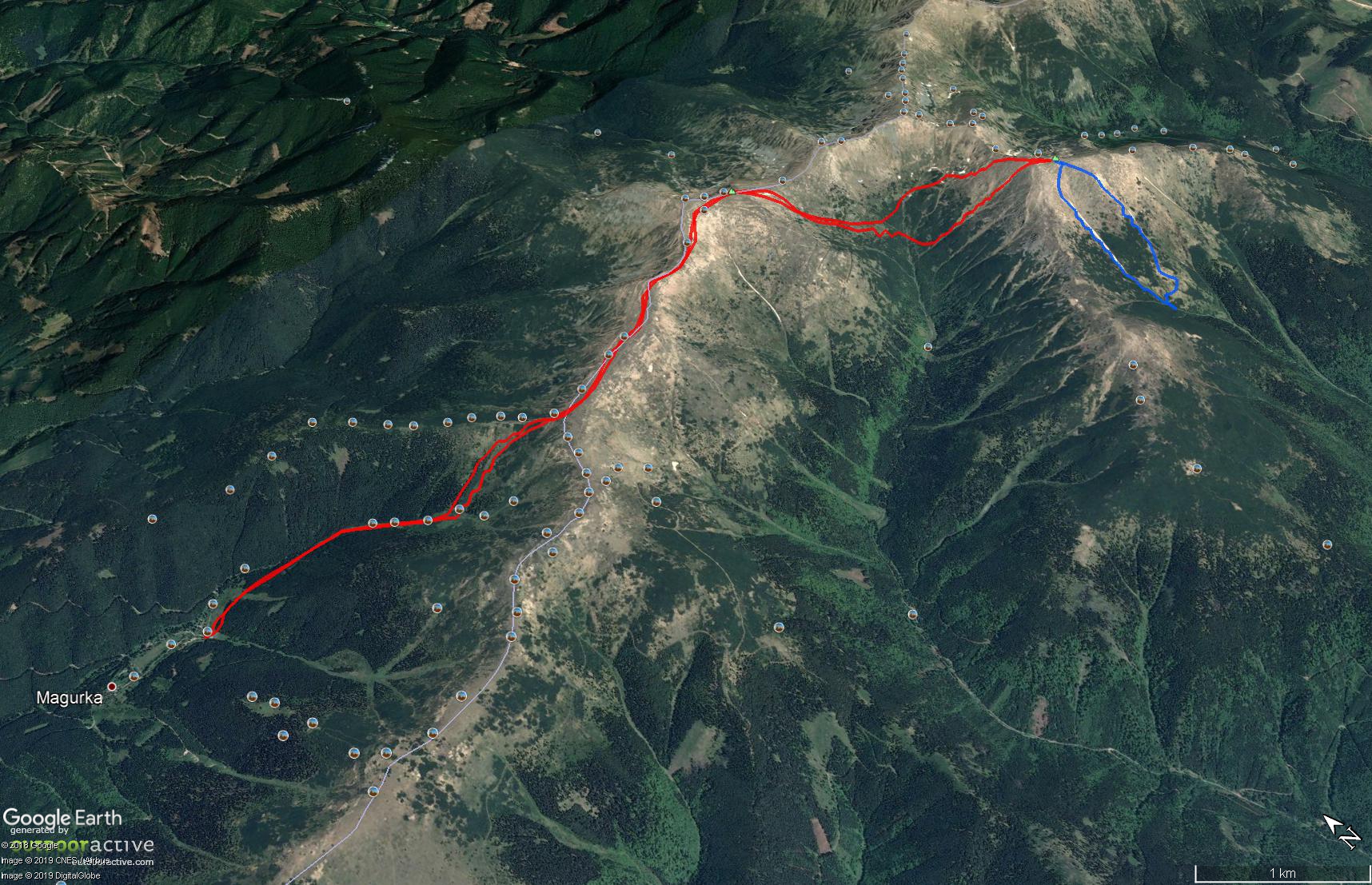 cca. 3 km / 500 vm - Pridaný zjazd z vrcholu Skalky na juh a späť