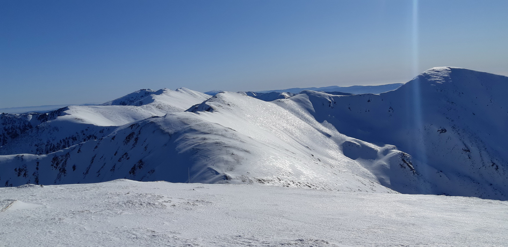 Som na vrchole znova udivený ďalším špecifikom Skalky - priestrannosťou. Len ťažko na Slovensku nájdete prírodné futbalové ihrisko vo výške 2000 metrov. Napriek rozložitému vrcholu však Skalka rozhodne nie je jednotvárna "buchta" a hlavne jej divoké severovýchodné úbočie ponúka viaceré línie na hranici extrémov. Do jednej z nich už dlhšie zvedavo nazerám, zatiaľ však nemám šťastie trafiť ju v podmienkach.