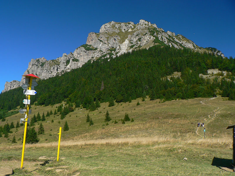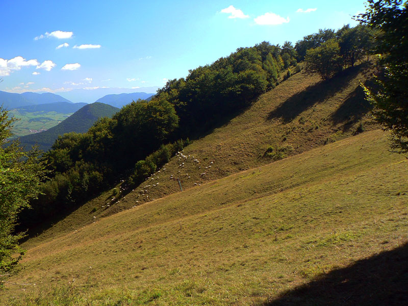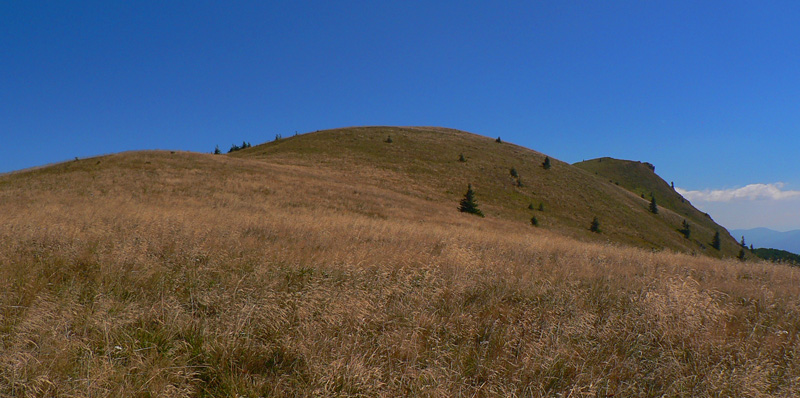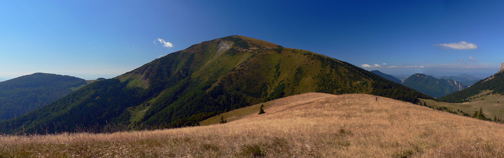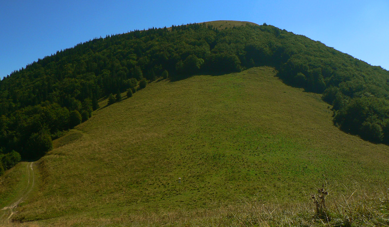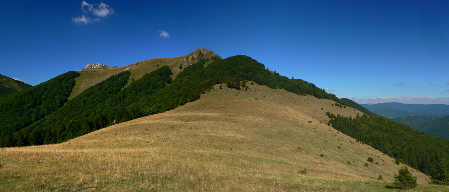 Zo Štefanovej je to „hore“ najskôr prudšie, potom miernejšie lesom do sedla Medziholie. Tak na hodinku a pol, jeden z najfrekventovanejších chodníkov vo Vrátnej. Nakoniec ešte krátky prudší úsek z Medziholia na Osnicu – tam už naopak nechodí skoro nik. Odtiaľ je to už len „dole“. Aj keď v prvej tretine je zostup spestrený niekoľkými krátkymi stupáčikmi. Do sedla Strungový príslop je to poriadne strmý zošup, potom tie hupáčiky okolo Magury a keď sa človek vynorí z lesa na zjazdovke, odtiaľ je to už len dlhééé a čoraz menej strmé klesanie, prevažne lúkami. Prevažne na východ, v ústrety vzdialenejšiemu Choču a bližšiemu Šípu. Ten sa odtiaľto na seba vôbec nepodobá :-) Teda na svoju známejšiu skalnatú tvár, viditeľnú z juhu. Vľavo Kubínska hoľa a vzadu Roháče, vpravo v protisvetle Veľká Fatra.