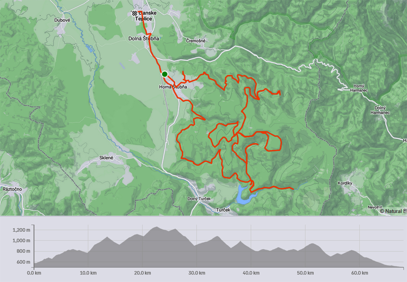 No pozor: nie furt z kopca, ako by sa mohlo zdať. Sklon sa tam do klesania definitívne zlomí, až keď nad les vykukne štubnianska dominanta Špičiak, a to už je pred zjazdom do doliny Dedinského potoka, tesne pred dedinou. A že som chcel ísť na pohodu, dal som si nechtiac ešte intenzívnu časovku do Teplíc, na osobák, aby som sa vyhol preplnenému nedeľnému Fatranu. Doletel som, keď už dvere zatváral a plný bol ešte viac ako rýchlik, tak super výber. Ale som bol doma skôr, o päť minút :-)