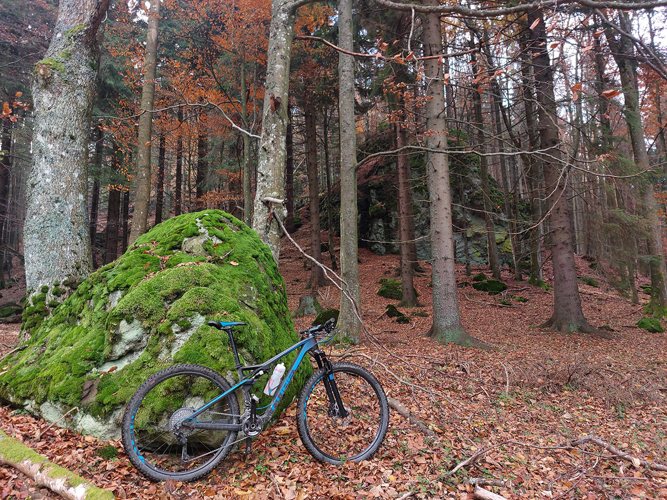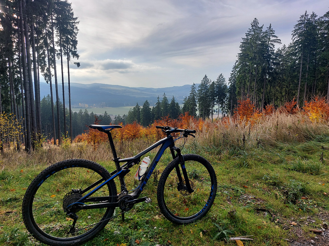 Dušičkový víkend a počasie konečne chvíľu prívetivé – nepršalo už zo tri dni, to je na túto usmoklenú jeseň poriadne dlhá pauza! Ako bola zrušená ostatná zima, tak teraz aj babie leto, že? No aj teplo udrelo na dušičky poriadne, ale zas tie blatá teraz už tak rýchlo neschnú. Tak sa mi nechcelo moc sa zaprasiť. Mal som síce na bajku už dve vrstvy blata, vari ešte zo septembra a októbra, tak že sa nič nestane, ak pribudne aj novembrová, ale zase s mierou! Bicykel v trojobale? Nie, lebo viem, že pod Flochovou v Kremnických vrchoch sú kilometre exkluzívnych lesných ciest, ozaj veľa ich je bielych, šotolinových. Ako na ozajstných pretekoch Strade bianche, ani tu sa nejde stále po šotoline - aj asfalty kadejaké a kameňohlina, samozrejme. A tunajšie strade bianche majú často zelený stredový pruh. Že mám týždenník na vlak, nič ľahšie ako dokúpiť lístok pre bicykel a vyložiť sa na Štubni z Fatrana. A už von z dediny cesta k lomu suchá ako v strede leta. Len keby nohy išli – zriedka už sa na bajk dostanem, tak to potom aj vyzerá, aj som pôvodný zámer trochu skrátil. Ďalej čítať ani netreba, fotonávod je v galérii a tu hore gpx. Takto to celé vyzeralo: