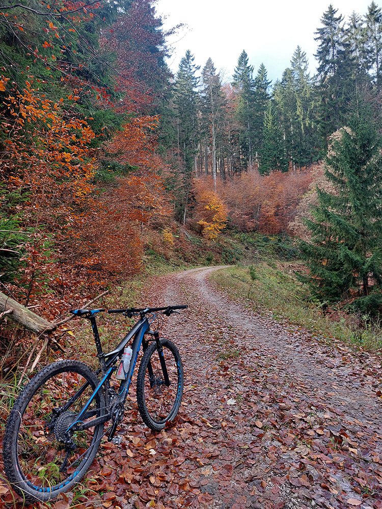 Hneď po vjazde do lesa prvá strada bianca, až po napojenie na asfaltku hore Dolinou Čiernej vody. Pohodofka v miernych sklonoch, blata skoro nič, a ešte občas aj slnko začarovalo farbami. Pomaly som sa posúval na východ za prašťania šotoliny a občasného šuchotu lístia.