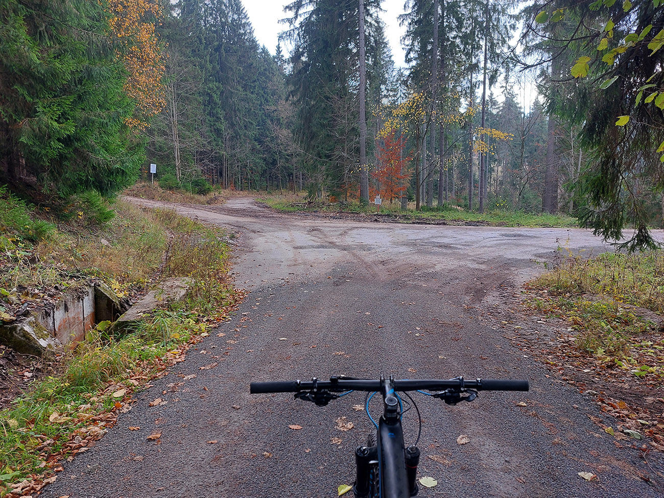 Tak nazad dole a z križovatky do ešte miernejších sklonov po príjemne praskajúcej šotoline, smer sedlo (alebo skôr križovatka) Široký peň. Cestou jedna poriadna zákruta, okolo prehľadné lesy a šírka aj pre kamión. Vynoril som sa na tej križovatke prvý raz, ešte dva razy som to mal v pláne, chystal som sa to tam poriadne zauzliť.