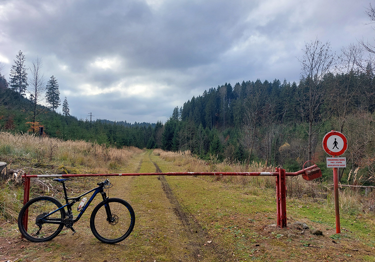 Na úvod dve malé odbočky hneď nad Štubňou. Prvá za výhľadom na ranný Turiec, ale hneď, ako som z cesty zišiel, lúka pod kolesami začala čvachtať. Potom ešte zachádzočka po lepšej ceste, že čo za hacienda sa na jej konci skrýva – a to len vodojem. Okej, tak nazad, popod lom a do lesa. Zatiaľ to bolo plnofarebné: