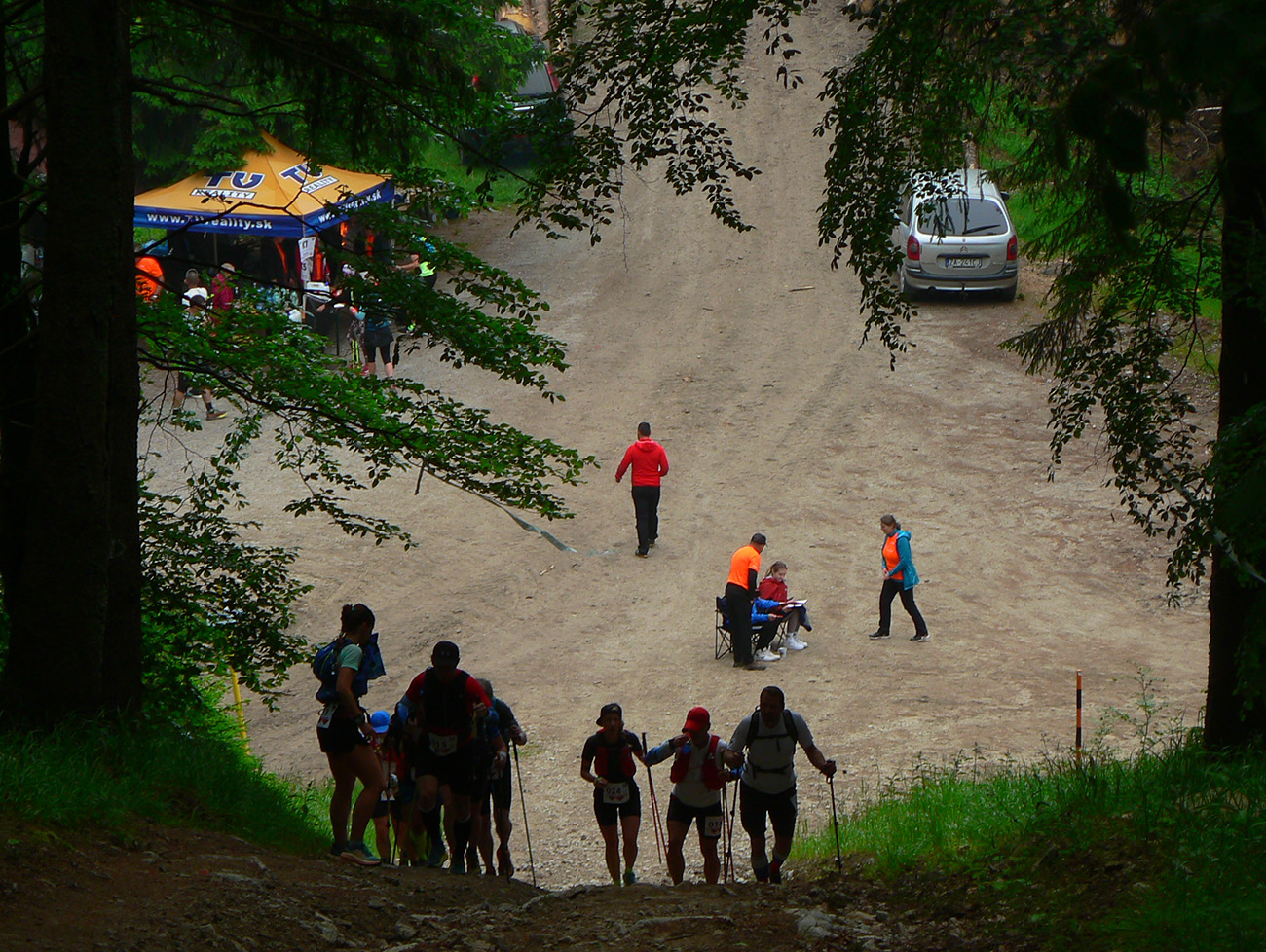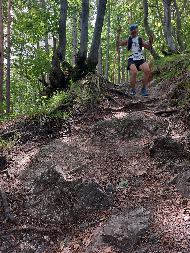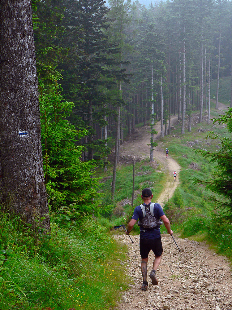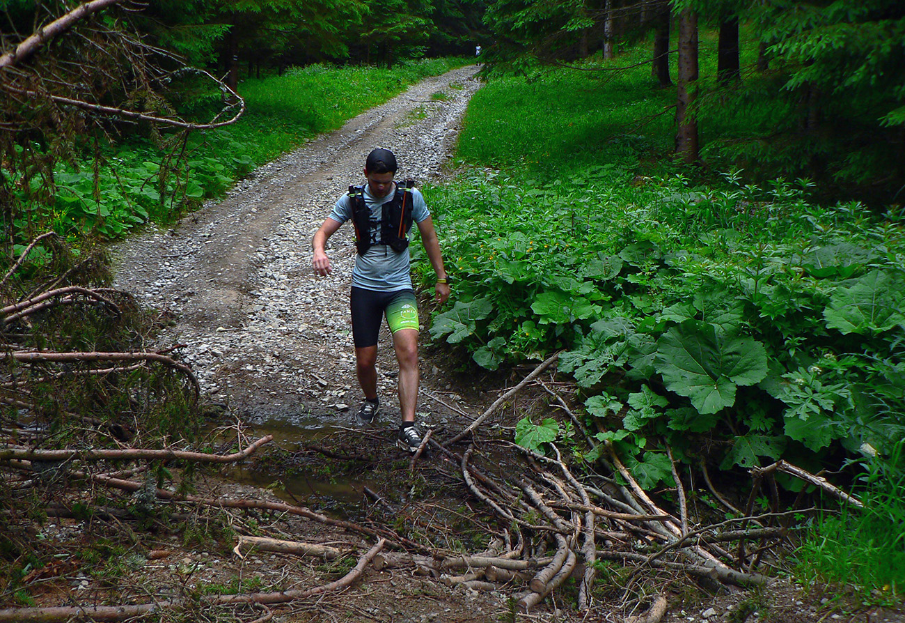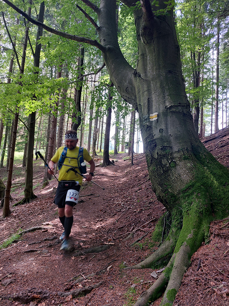 Ani po tej nutnej zmene nebola trať ale vôbec ľahká, už to prevýšenie o niečom hovorí. Ale čím je najmä typická, že aj normálne sú tu vééééľmi dlhé stúpania, takisto aj zbehy. A nie jednoduché – z Minčola do Višňového na kontrolu prišlo viacero kolien rozbitých a nôh dooškieraných. A to ešte na záver čakal ten známy superstrmý brutus ako bonus - dole do cieľa (teda do Krakova, až odtiaľ do cieľa), od poslednej kontroly pod rozhľadňou. Tam komu už nohy neslúžili, vyžral si to poriadne. Niektorí aj cúvali.