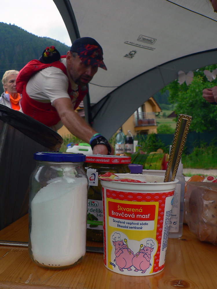 Ale nakoniec sa hádam dokotúľali v zdraví dole k Váhu, na strečniansku Marakanu, všetci. A mohli začať vychutnávať - lebo tráva mäkká, výčap bohatý a počasie ako na dovolenke. Mám dojem (aj podľa rečí), že viacerí sa na takéto akcie prihlasujú aj/len preto, aby sa mohli na obžerstvovačkách a potom v cieli dobre najesť. Asi im doma nedoprajú či čo. Zato tu organizátori dopriali všetkým, poriadne teda! Na tom malom, nepodstatnom, niekoľkohodinovom trápení medzi prestávkami na jedlo vraj až tak veľmi nezáleží, prípadne spomienky naň rýchlo vyblednú, veď poznáme spomienkový optimizmus... Tak davaj o dva týždne na ďalšiu akciu, keď sa otlaky a ego zahoja. A o rok na Mašľu, hádam už v pôvodnom „znení“. Všetko ostatné a podstatné (aj komplet výsledky) nájdete na domovskej stránke strečnianskych turistov.