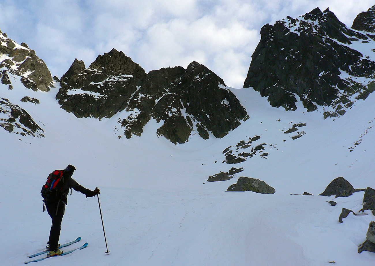 Ešte pár oblúkov relatívne dobrej lyžby a vysoko nad Zeleným Kačacím plesom lepíme pásy. Pred nami najdlhší výstup, do Prielomu. V traverze do Litvorovej doliny dosť hľadáme cestu - nielen pomedzi šutre, ale aj pomedzi zvyšky tráv, aj litvory trčia zo snehu. Potom čím vyššie, tým lepšie. Od tuhého snehu, cez šmirgľový firn, po občasné neškodné ľadové platničky. A zas: až vysoko pod Prielom to aj bez haršajzní výborne drží. Aj vo vylízaných traverzoch nad severným brehom Zamrznutého plesa.