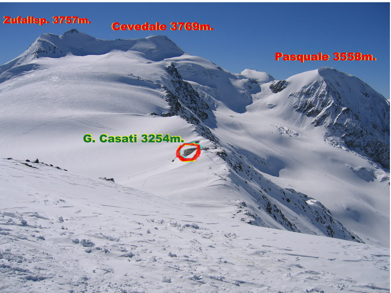Štvrté miesto získava Cevedale. Tento ideálny lyžiarsky kopec sa nachádza v Ortlerských Alpách. Vedú naňho výstupové trasy zo všetkých štyroch strán, za ideálnych podmienok sa dá vyšlapať na lyžiach až na vrchol. Nie je to žiaden extrém, v okolí sa nachádza viacero chát, ktoré poslúžia ako východisko na túru.