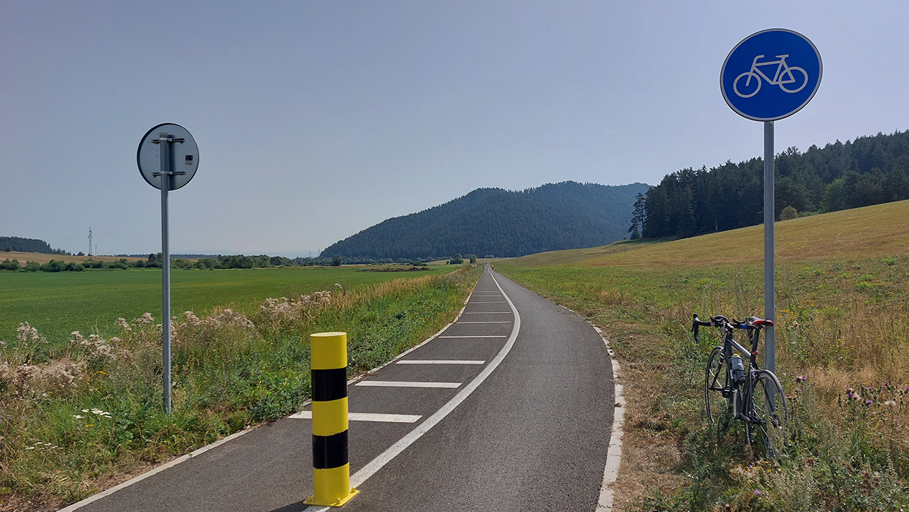 Netrvá to dlho a na zákrute odbočujem na červenú cyklotrasu popri Čiernom Váhu a klasika – na bočnej ceste zase lepší asfalt ako na hlavnej. Teda aspoň úvodných päť kilometrov, po cyklorázcestie Benkovo: