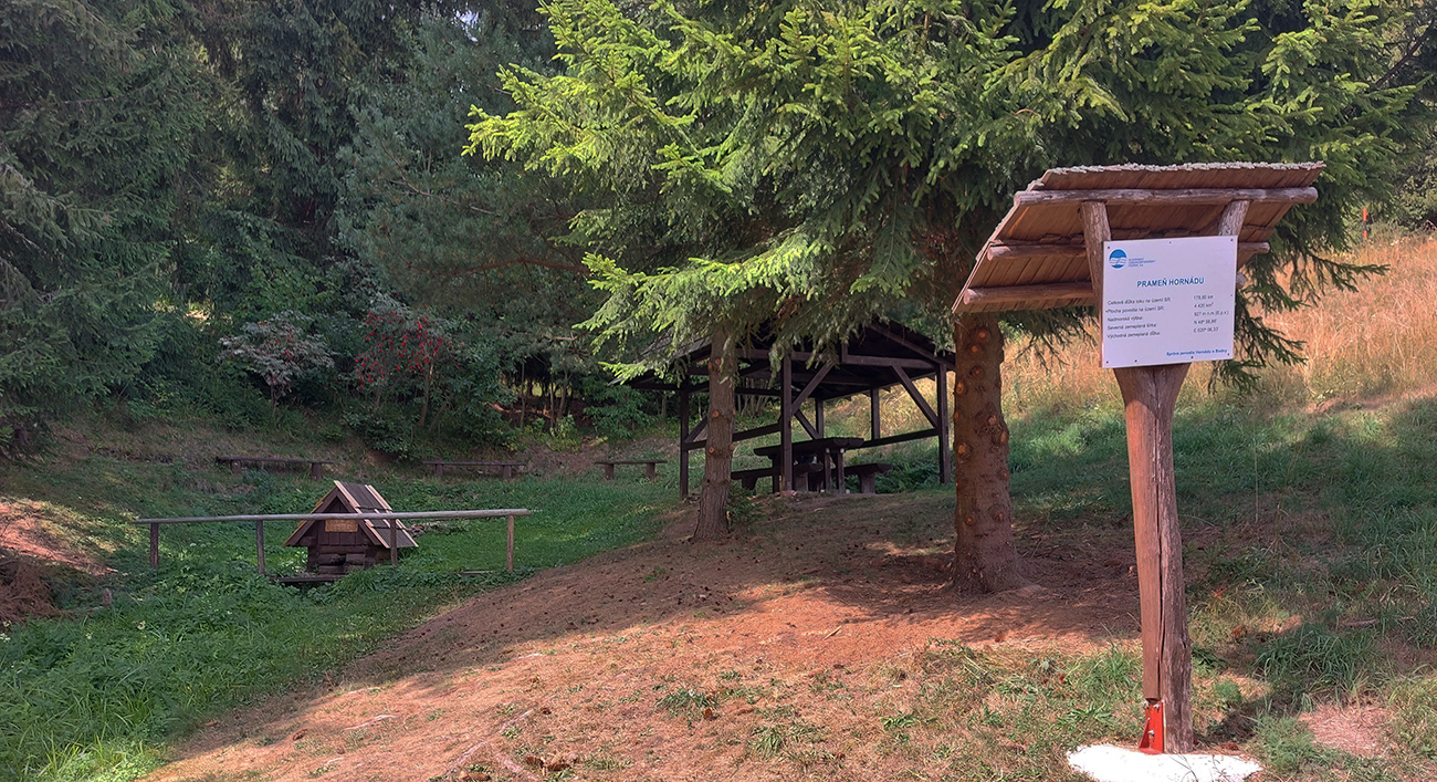 Prameň Hornádu, hurá! A vraj pod Kráľovou hoľou, no máš ho vidieť... Voda mi akurát dochádza, tak super. Akurát že z tohto prameňa by Hornád nevyžil – kým nacvŕka, stihnem aj uschnúť, aj sa najesť, aj odfotiť, aj sa ponudiť. Ale hneď sa veselšie stúpa a už len kúsok a som hore, ufff. Ale bol to záhul v tom teple, teda...