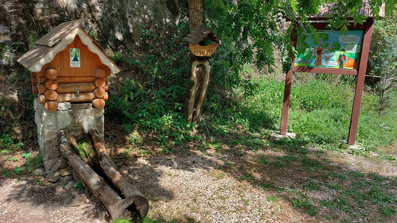 Strategické info: v osade je pri smerovníkoch a odpočívadle hneď aj studnička, či čo to je, lebo z dreveného domčeka kohútik ako v kúpeľni trčí. Ale tečie z neho fajnotka chladivá, to je hlavné.