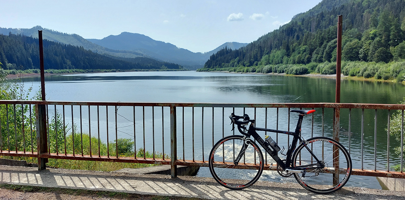 Popri vodnej nádrži je to už čistý komfort, aj pohľad na oblohu nad stále viac sa otvárajúcou dolinou hovorí, že sľubovaný front je ešte v nedohľadne. Len tie kamióny s drevom tadeto jazdia poriadne šialene, aspoň tak sa mi to zdá. A ako naschvál, ako leziem definitívne z lesa, aj mrak sa spred slnka definitívne odsúva kamsi do preč. Ale už nevadí, už som taký nasolený, že je mi to jedno.