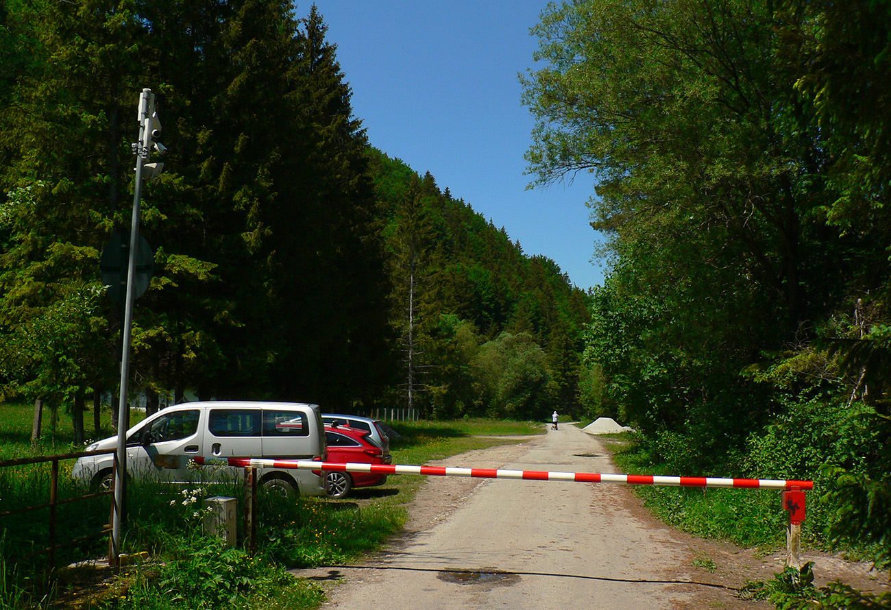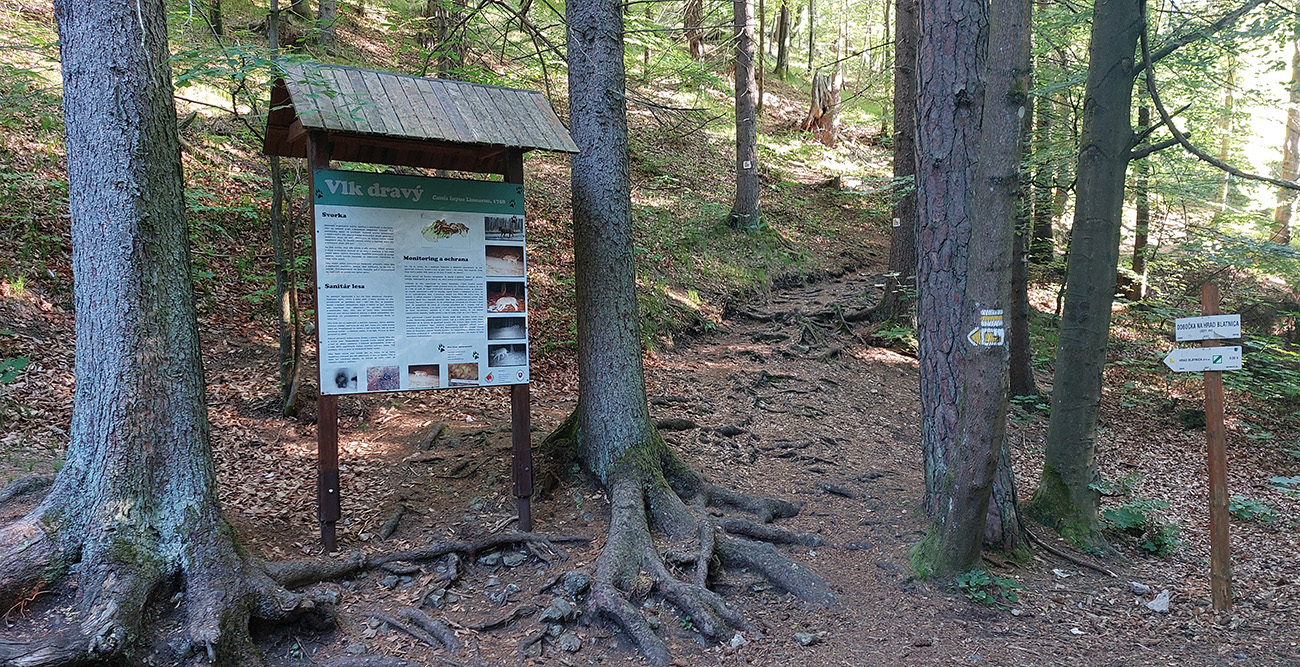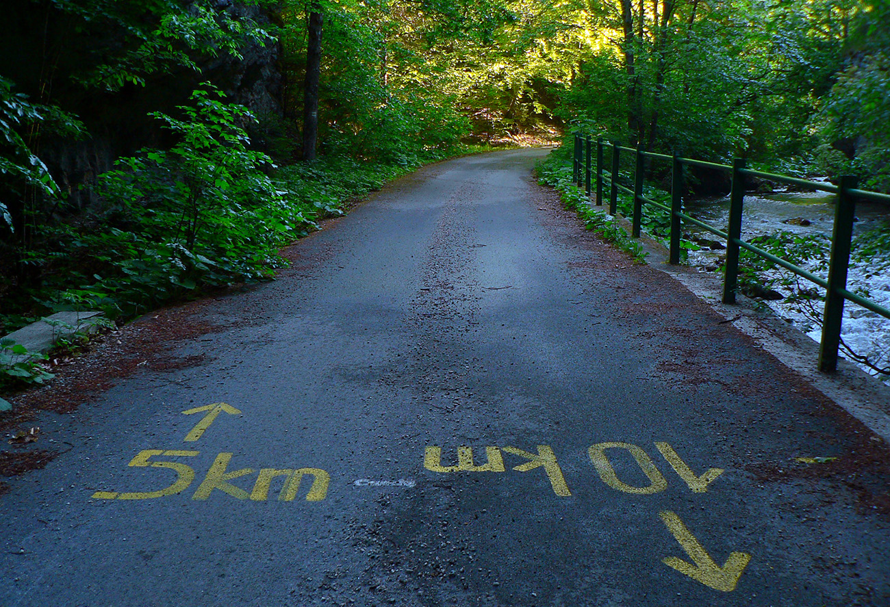 Ale hrebeňové vsuvky vybavené, v Balcierove na zemi sa povaľujúca cykloznačka hlásila „Necpaly 11 km“, tak som zase mohol šuchtať nohami bez obáv. Lebo aj tu je asfalt, síce taký vyštrbený, ale dá sa aj z neho obzerať dookola po skalách. Cestou dole síce vidno prieseky v lese a drevosklady popri ceste aj iné znaky ťažby, ale celkovo tá dolina našťastie (ešte) nepripomína fabriku na drevo. Skôr som sa cítil ako v lesoparku. Tak dúfam, že nielen okolo cesty ostal nejaký les tak „pre oko“.