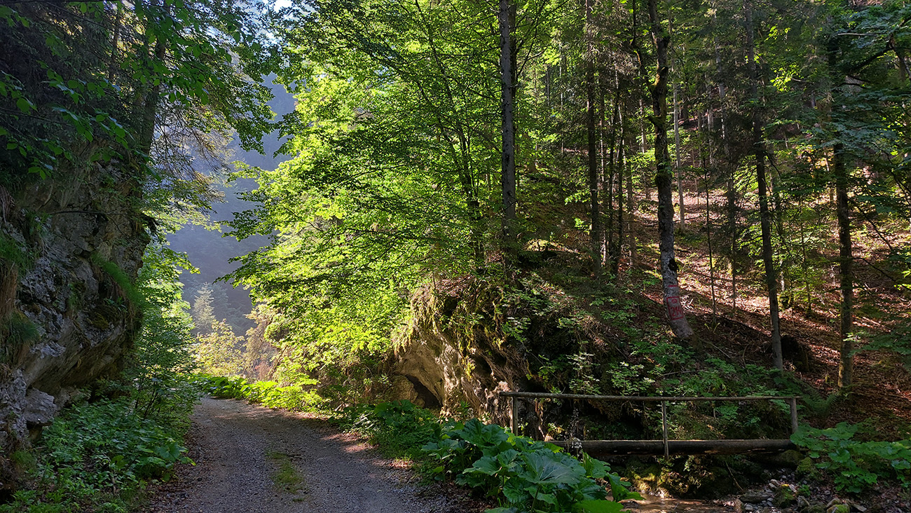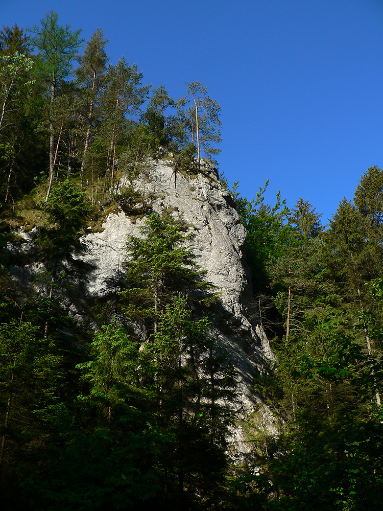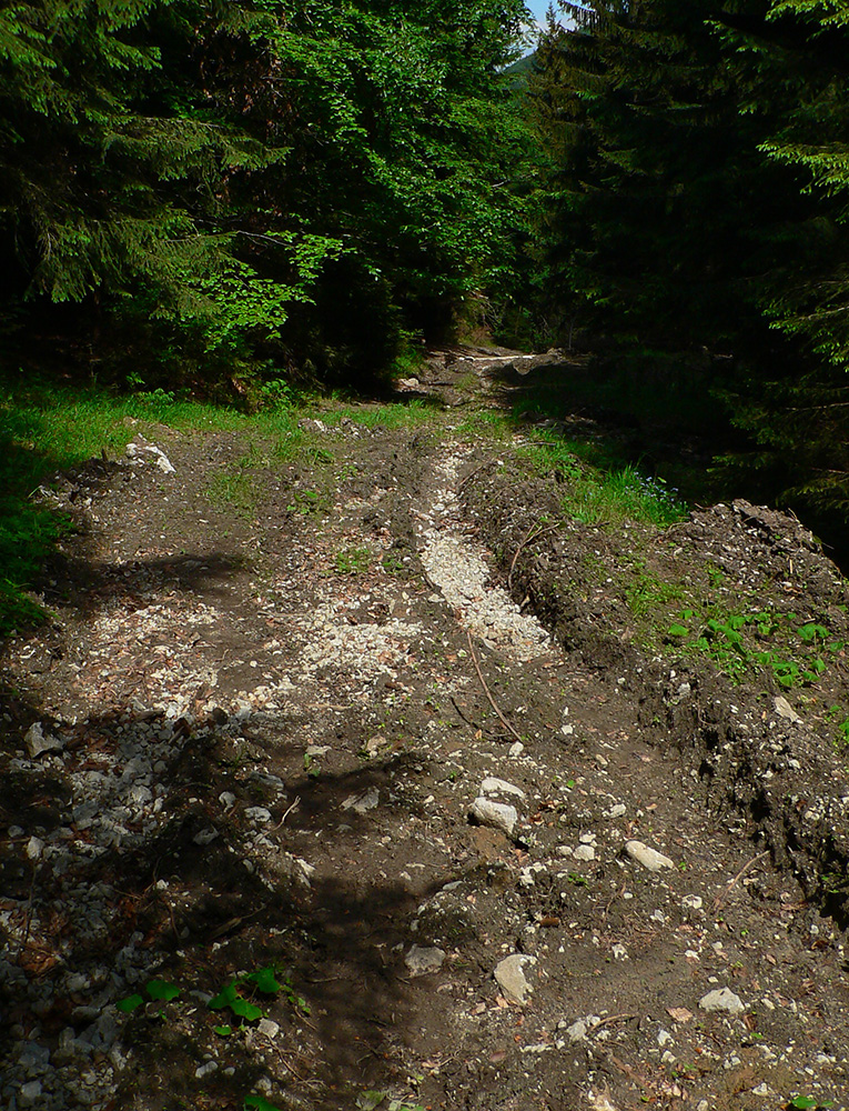 Tú som samozrejme obísť nesmel, tak som si ten kúsok zašiel. A potom už koniec asfaltky a šotolina v Dedošovej doline, aj s jedným úsekom s obrovskými, vyholenými svahmi. Ako by som sa neponáral do hĺbky národného parku, ale do nejakých plantáží na drevo. Našťastie nasledujúci bralnatý úsek doliny ten dojem znovu zlepšil.