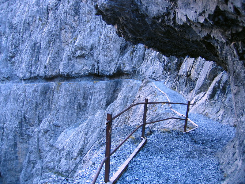 Pôvodný plán ísť na biku cez Madritschjoch je kvôli snehu nemožný, aj všetky ďalšie nápady sú moc vysoko. Pozerám do mapy a vraciam sa k možnosti, ktorú som už včera zamietol - Val Uina. Chodníček vysekaný do skaly, spájajúci dve doliny medzi Talianskom a Švajčiarskom.