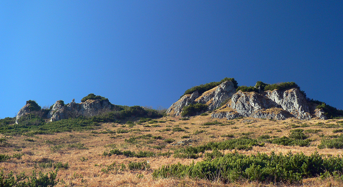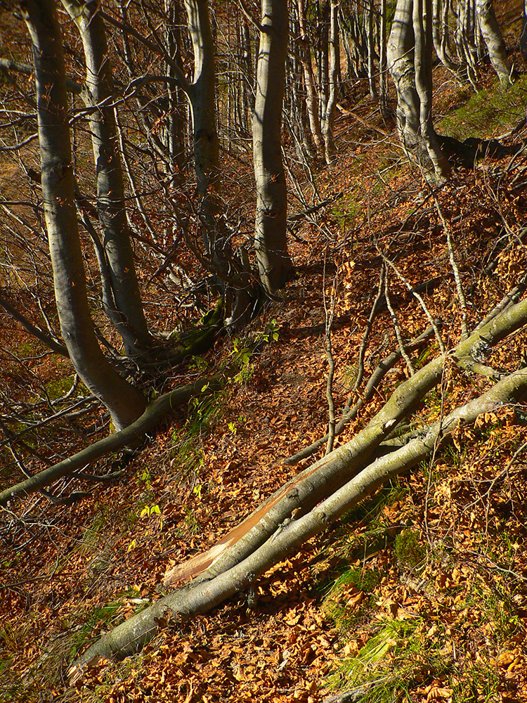Na Kriváni aj v okolí čistá krása jesenná, len ľudí na mrte, tak povegetenie v závetrí a nie na vrchole, tam by bolo treba rúško :-) Ďalej po hrebeni smerom na západ, ale len z kopca, do sedla Priehyb. Lebo ľudí na dve mrte, tak sa nechávam zlákať do žltého traverzu popod Stratenec a Biele skaly. A je tam príjemnejšie ako na hrebeni, bez štipľavého vetra a tlačenice. Len priechody cez lesíky sú furt trochu zaváľané polámanými stromami, ešte zo zimy 2018/19.