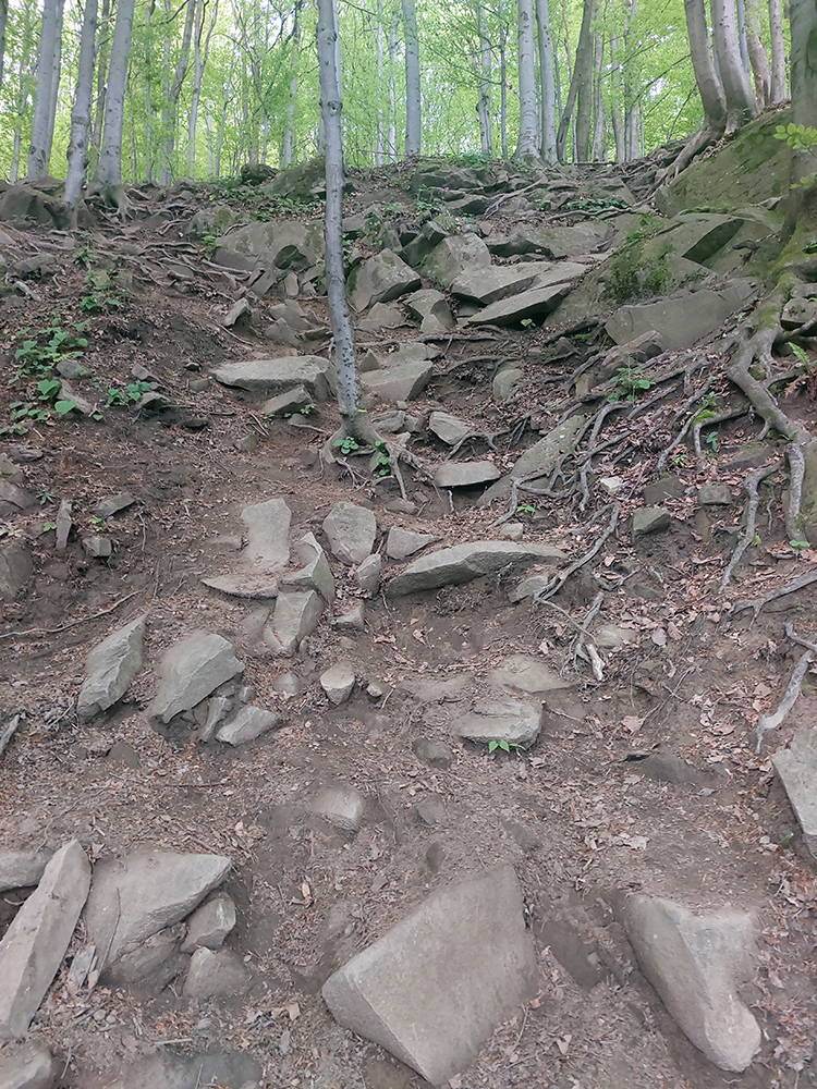 Nie je náročná len parametrami (vraj 248 km a 10 500 v. m.) a logistikou (pre stredoslováka). Pre niekoho aj monotónnosťou, Furt v takom zelenom tuneli, len les a chodník. Kľukatosť je ďalšia výzva – myslel som si, že na hranici to bude pekne prečistené, ale nie. Na mnohých miestach obchádzačky, preliezačky, vyhýbačky. Buď popadaných stromov, alebo blata a hlbokých mlák v koľajach po autách, alebo jednoducho zarastených úsekov. Málo vody – ďalší problém. Na hrebeni a vo flyšovom podloží, klasika... Preto je dobré ísť na jar a mať aj nejaký malý „naberáčik“. Mne poslúžil vrchnák z cyklistického bidónu. Na druhej strane je to krásna divočina a pod nohami v podstate stále pohodlne mäkkúčko. Niekedy až príliš, hehe... Takže som zvážil plusy a mínusy a keď som si koncom mája myslel, že mám čosi natrénované, sadol som o druhej ráno do rýchlika a išlo sa. Výsledok je tu a pod obrázkom aj popis. Snáď niekomu pomôže: