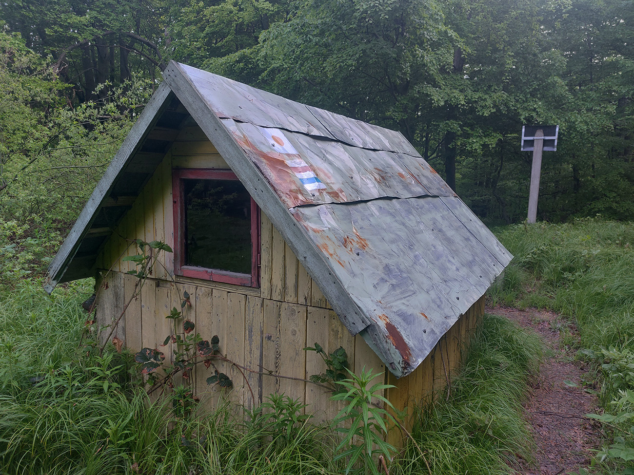 O pol štvrtej začína nebo blednúť a o štvrtej už všetky miestne spevavce vreštia ako divé. Vraj božské lesné ticho, no určite, hehehe... Krajina okolo Haburského rašeliniska je zaujímavá: zmena oproti bežným, kompaktným lesom doteraz, ako na prechádzke parkom si pripadám. Len v parku to pod nohami tak nečvachtá. O pol piatej balím čelovku, aj v prítmí lesa už vidím dobre. Ešte som si naposledy zasvietil do vodojemu, ktorý ma ale napriek očakávaniam a názvu sklamal. Je to len ruina. Na jej dne síce rúra a z nej výdatne tečie voda na pohľad lákavá, ale v mojom stuhnutom stave by som musel podať poriadny gymnastický výkon, aby som sa k nej dostal. Našťastie nemusím a po Balnicu ešte nejaké pramienky budú. V tejto „druhej polovici“ to s vodou už nie je také zlé ako pred Duklou.