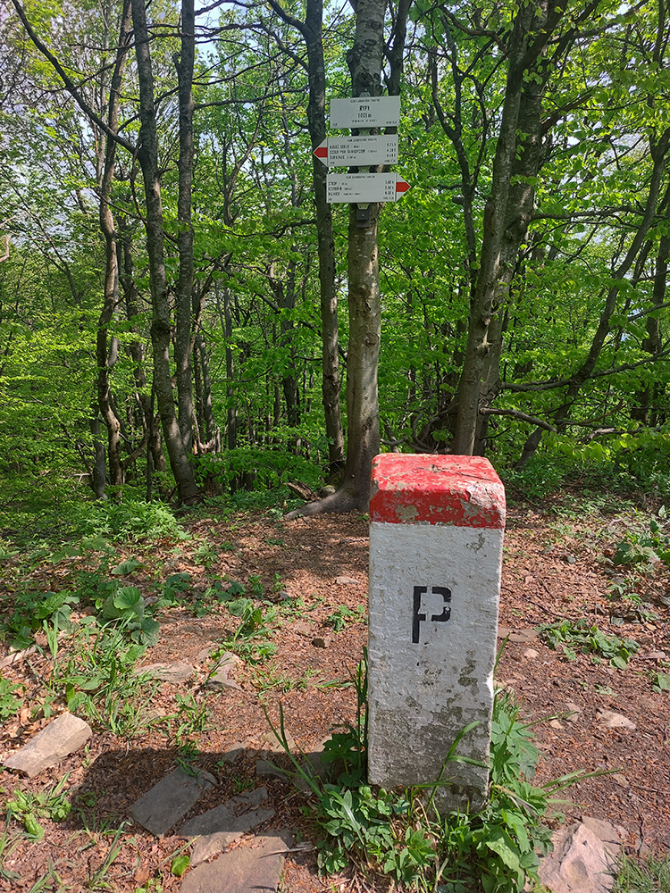 Lebo nasleduje odbočka cez potok, chvíľka na normálnej lesnej ceste a koniec srandy. Nasledujúca odbočka doprava vedie do strmého svahu, len dákym priesekom pomedzi stromy. Ten ma vypľúva na lúku a ďalej čo? Cesta nikde, tráva po pás. Smer je jasný len podľa gps, tak idem a hľadám ďalší vstup do lesa. Hovorím si „veď dobre, na mape je toto len chodník, o chvíľu sa napojí na cestu“. Hej, napojil som sa – na najhnusnejším možným spôsobom rozbitú a konármi zahádzanú zvážnicu. Na križovatkách s ďalšími podobnými „cestami“ problém, kade ísť, na lúkach hlboké stopy po traktoroch, za mostom cez Uličku naopak neexistujúce cesty a zase len prieseky medzi stromami. Značky niekde megaveľké, niekde zbytočne nahusto, inde ale chýbajú práve tam, kde ich najviac treba. Oddych pre hlavu a jednoznačnosť cesty len na kúsku starej asfaltky, kade vedie aj cyklotrasa. Potom zase divočina a až keď ma to vypľúva na spevnenú cestu dolinou potoka Kertenovatec, už som „v suchu“ - do Uble je to už len rovno za nosom, mierne z kopca. Na hranicu dorážam o štvrtej ráno a budím samozrejme pozornosť policajtov, že čože si to tam fotím. Aj im po vysvetlení trochu padajú sánky, ale nevolajú na mňa pánov s bielou kazajkou, tak pohoda.