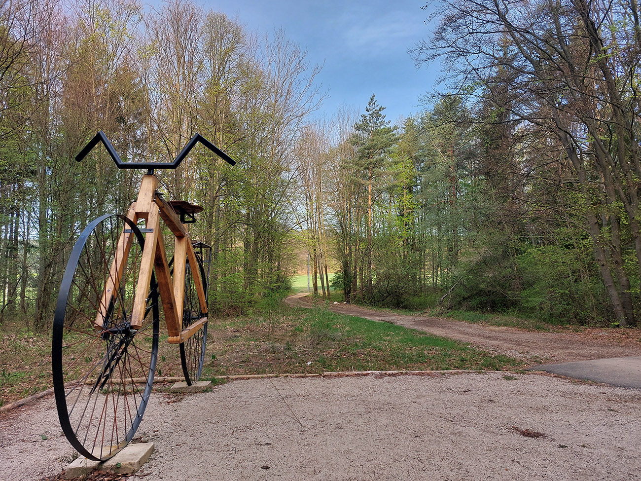 Konkrétne z Rakova (od vlaku) skoro do Rajeckej Lesnej. Smerom tam popod Kýčeru, cez Jankovú a Skalky, z Vríčanského sedla dole do Rajeckolesnianskej doliny ku vlekom. Nazad hore dolinou do Sedla pod Úplazom, odtiaľ kadejakými lesnými cestami ponad Sloviansku dolinu. Na megalúke pri megabicykli nad Kláštorom pod Znievom som uzavrel okruh a tou istou cestou ponad Valču som sa dopotácal nazad na stanicu.