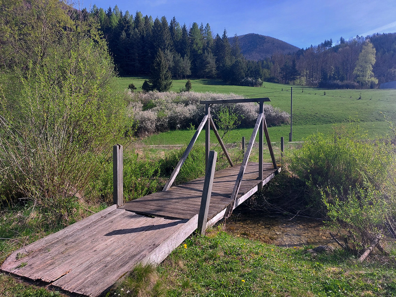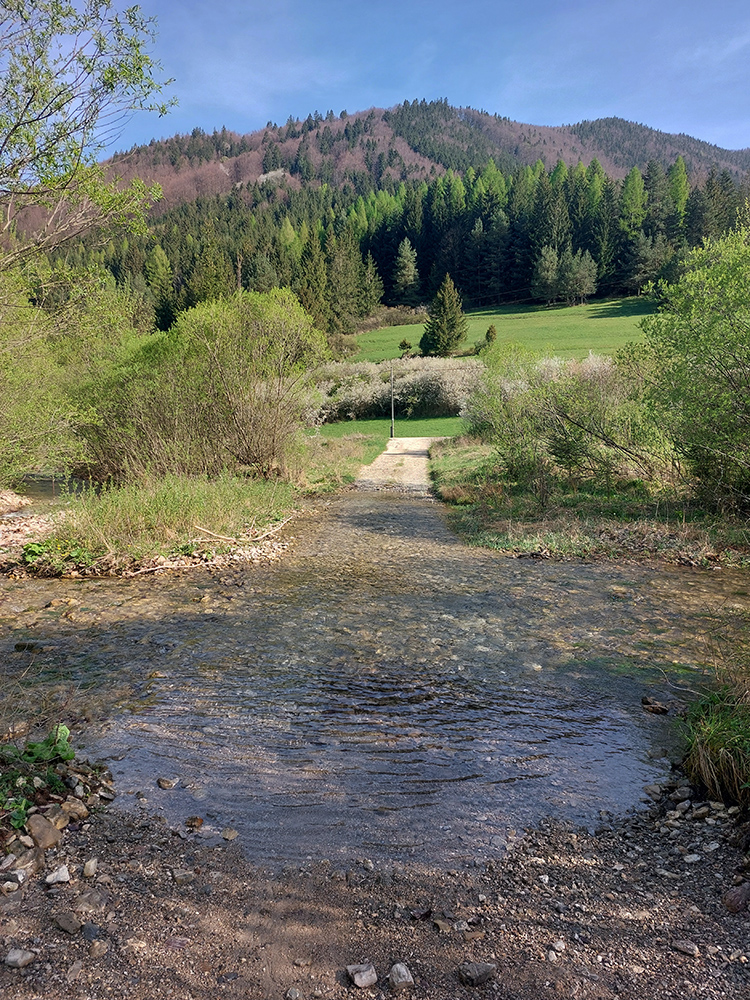Hore dolinou najskôr po asfalte, potom klasicky šotolina a pristrmujúci sa hlineno-kameňato-koreňatý chodník, v závere megastrmý. Spod Úplazu kilometre pevných zvážnic, ale zostup na nižšie poschodia cez krásne horské lúky. Len vypipľanú chatu pomaly za každou zákrutou som na nich veru nečakal. Pretože som chcel okruh uzavrieť čo najneskôr, dostal som sa až na dno Slovianskej doliny pri rybárstve, odtiaľ k tomu megabicyklu zas mierne do kopca, po mierne traktorom načechranej zvážnici. Našťastie bolo sucho.