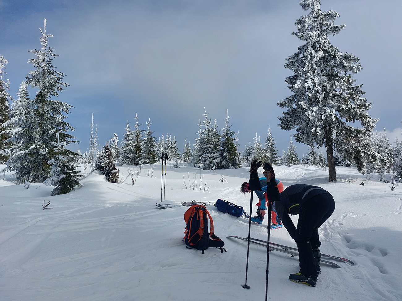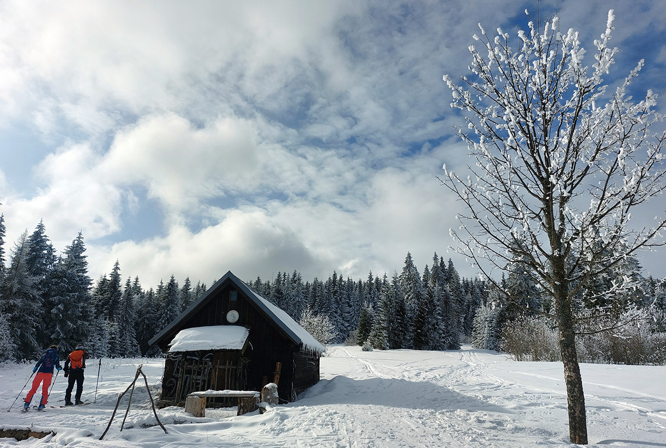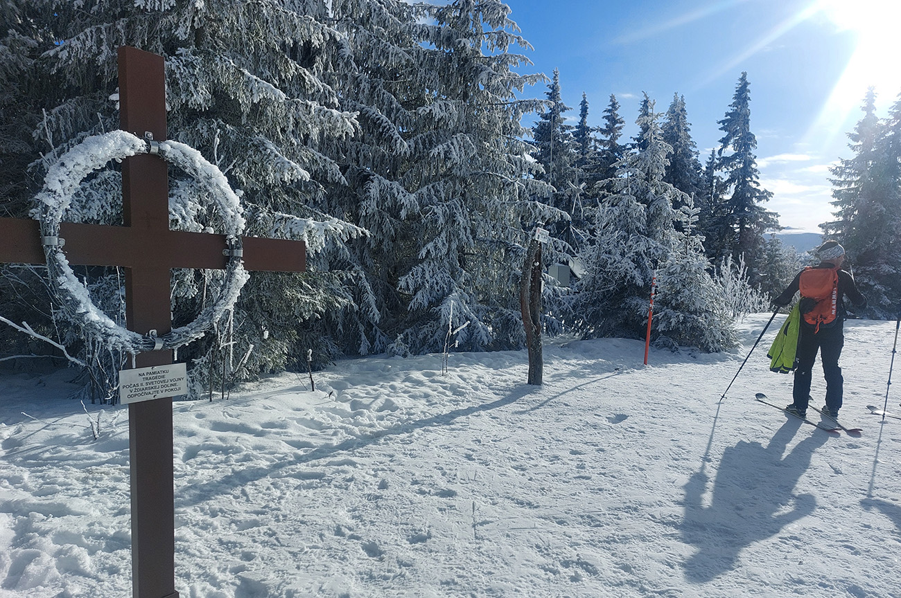 Dalo by sa pokračovať v oblúkovaní až na dno Ždiarskej doliny k tomu smerovníku, ale že radšej nalepíme a prepásujeme sa k tej svetoznámej „búde nárekov“. Lyžovačka pre spestrenie vraj cestou nazad, možno...
