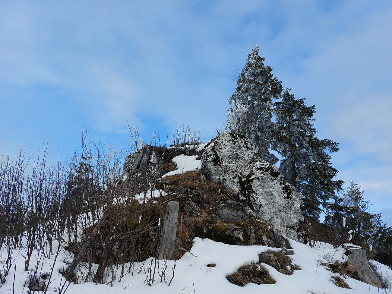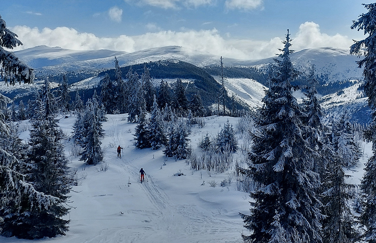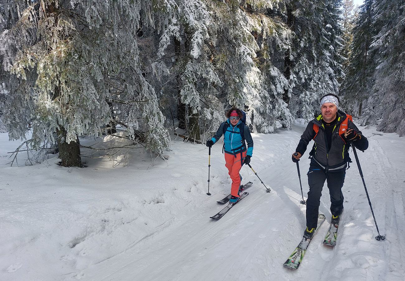 Potom už pohodlná šúchačka, skoro po vrstevnici. Zvyšky lesa obielené, počas takejto zimy to tam vyzerá stokrát lepšie ako v lete.