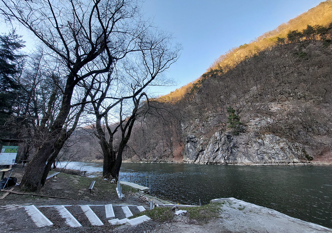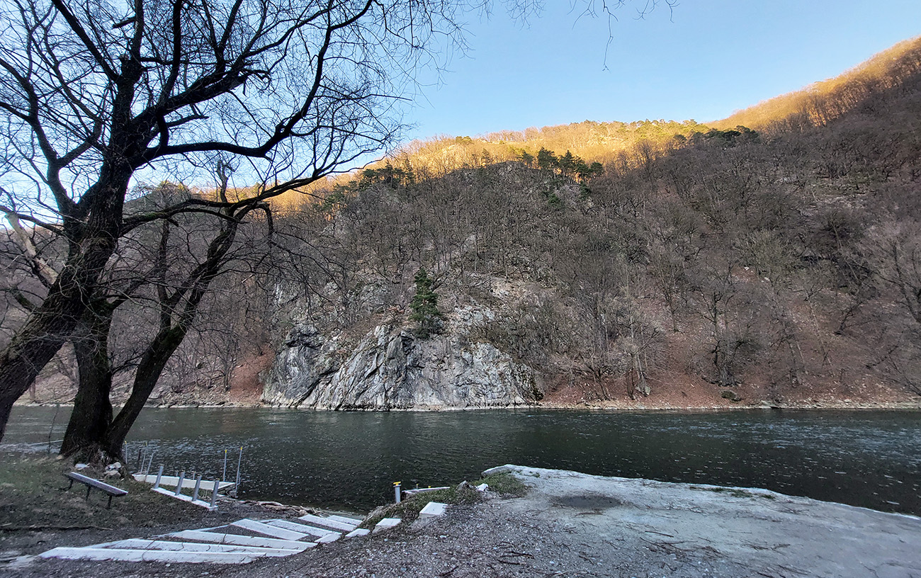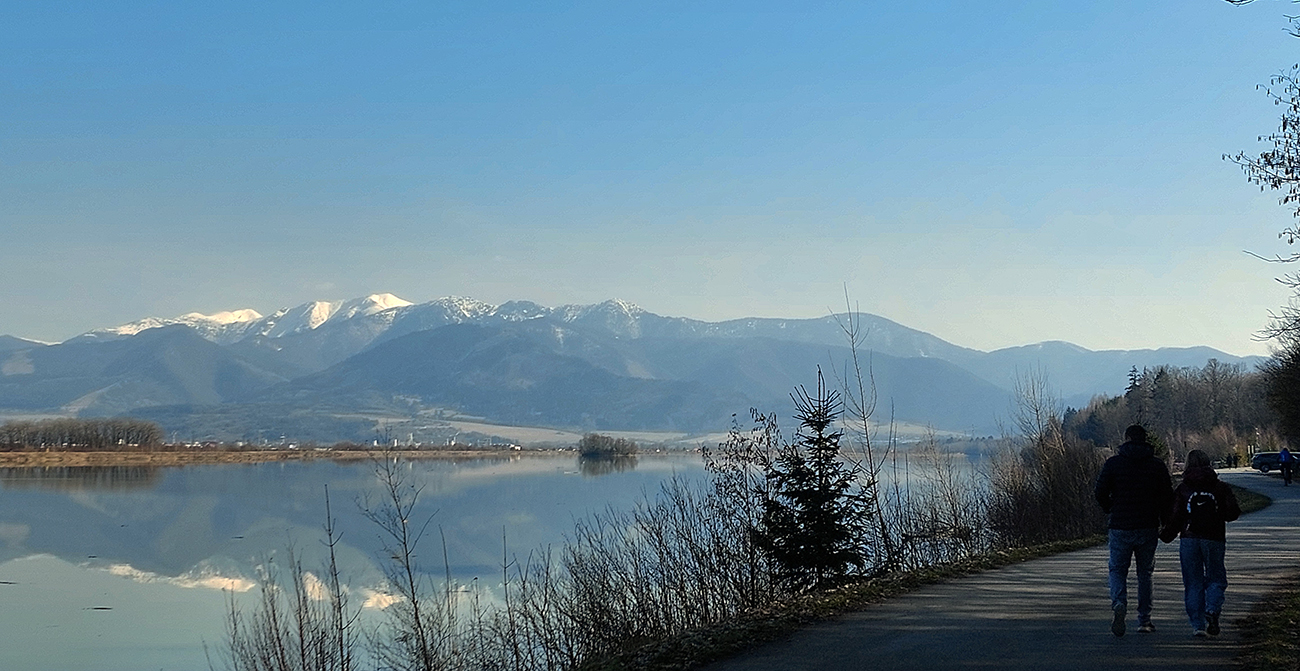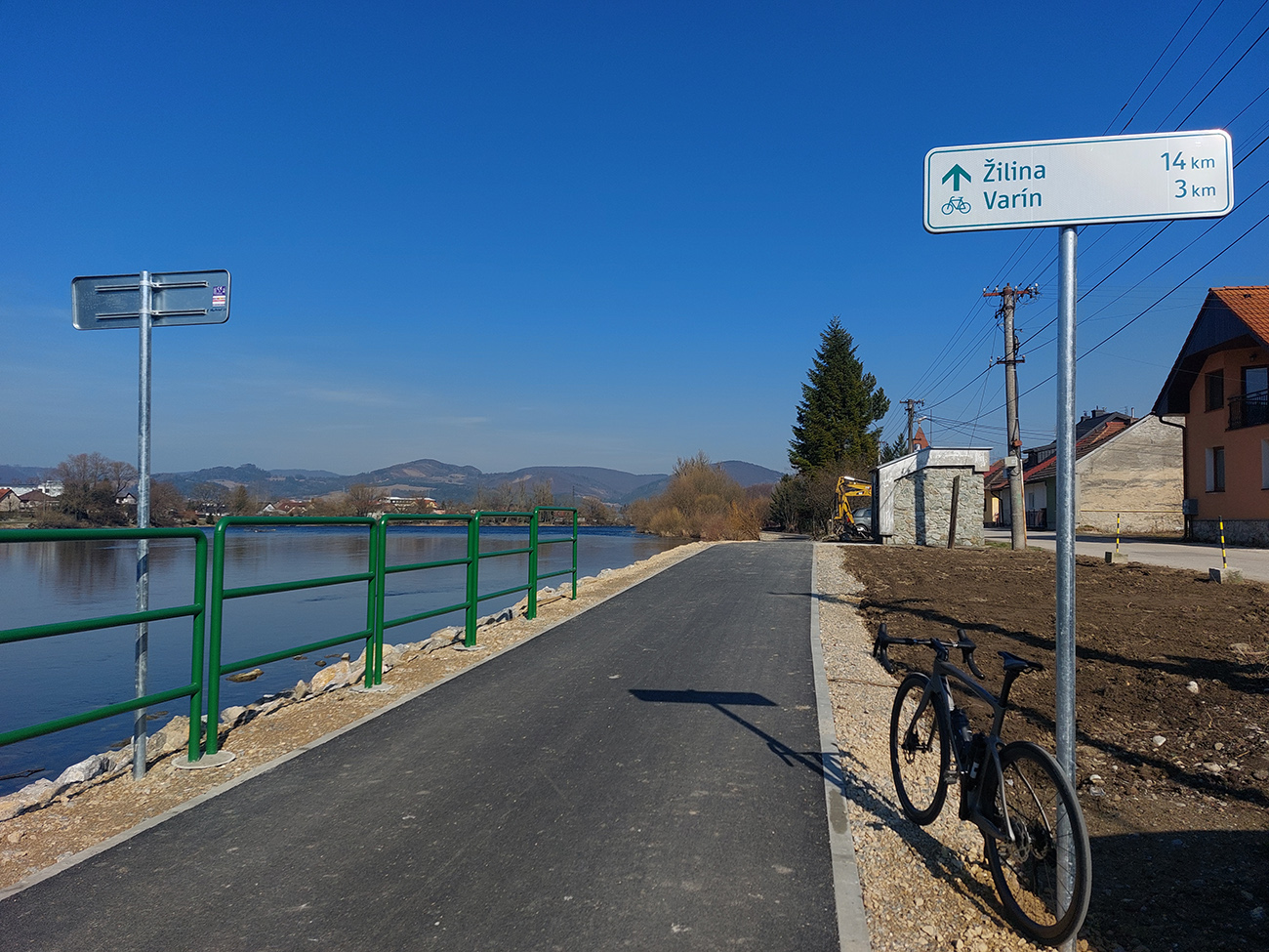 Nazad je to (aj vďaka tým tieňom) po slizkejšom a aj popukanejšom asfalte, zato v ústrety zasneženej Krivánskej Fatre. Naľavo sa na hladine zrkadlí Straník, nik nad ním ešte nelieta. Cestou veľa chát a zopár pekných zákutí, na konci sa samozrejme vpredu otvorí pohľad do pažeráka Strečnianskeho prielomu, ale to až ponad strechy domov Strečna.