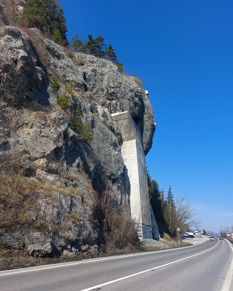 Na konci prvého meandra, len kúsok pod miestom, kde sa do protiľahlého Domašína vnárajú dva tunely, je nenápadné, no veľmi zaujímavé miesto. Na zvyškoch druhého legendárneho brala Margita stojí pod zvodidlami malý betónový obelisk. Je to základný nivelačný bod z tretieho vojenského mapovania z konca 19. storočia. Len sedem ich bolo v celom Rakúsku – Uhorsku a tento je jediný na Slovensku.